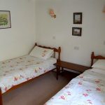 The ground floor comprises entrance hall, well-appointed separate bathroom, and twin-bedded room with beamed ceiling.